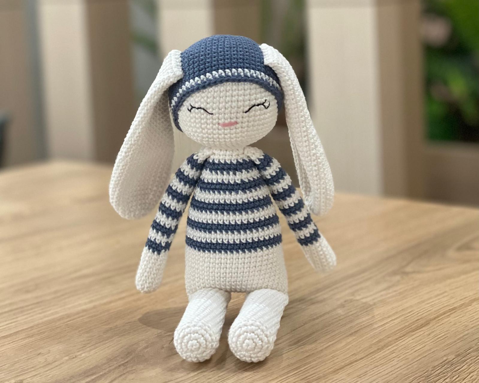 Crochet Bunny Toy: Personalized Amigurumi Knitted Rabbit Handmade Doll Toy